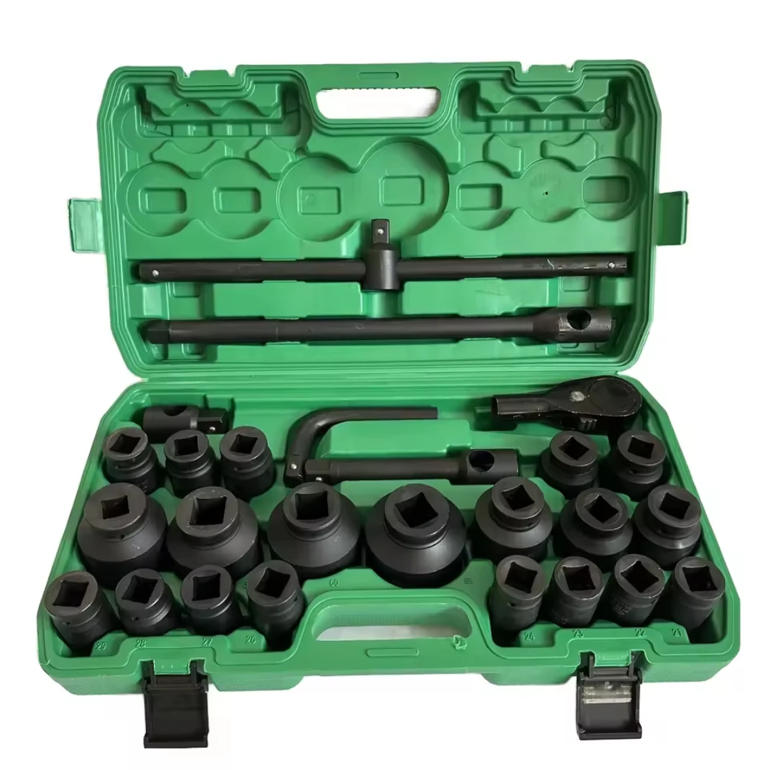 Ce coffret professionnel de douilles à chocs 1" (pouce) est parfait pour les travaux mécaniques intensifs sur camions, engins lourds et machines industrielles. Fabriquées en acier au chrome-molybdène, ces douilles ultra-résistantes supportent les couples de serrage élevés sans se déformer.