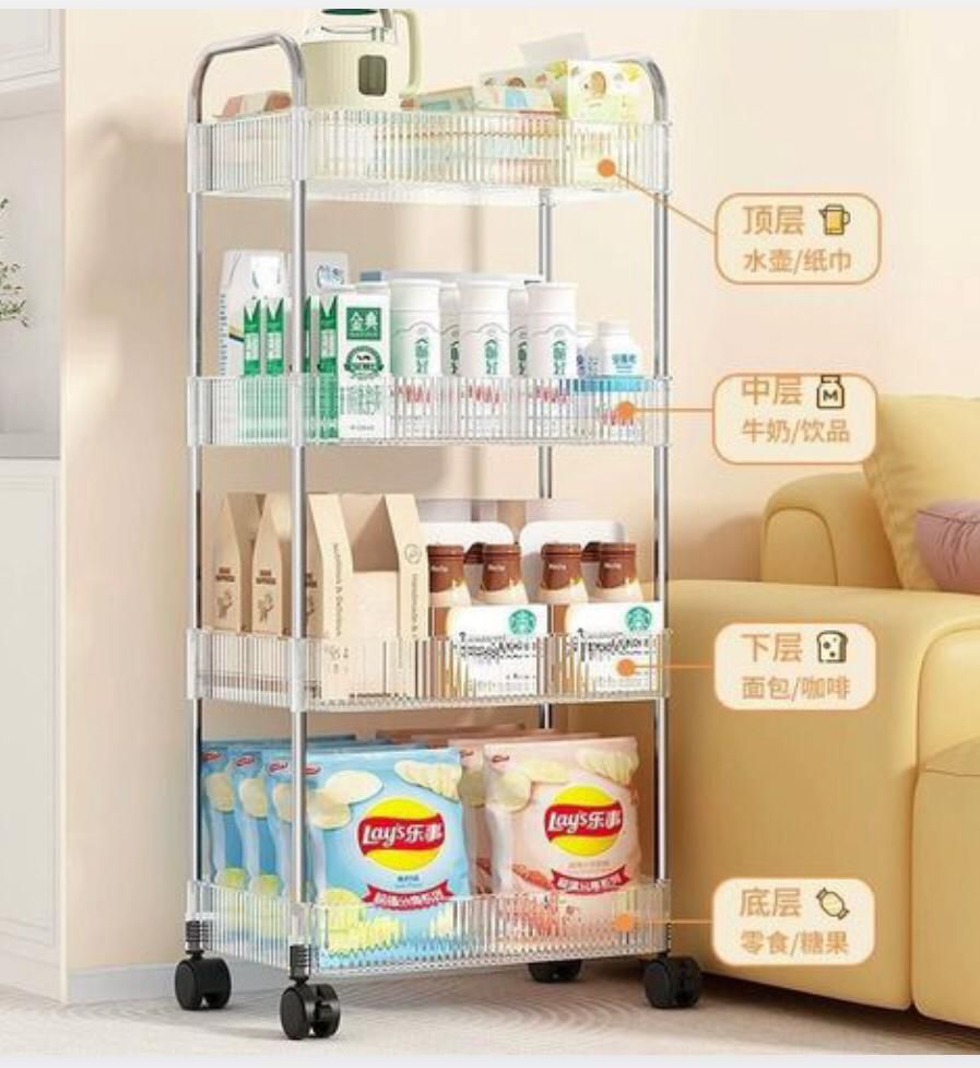 Optimisez votre espace avec cette étagère de rangement mobile 4 niveaux, pratique et polyvalente pour organiser votre cuisine, salon, salle de bain ou bureau.