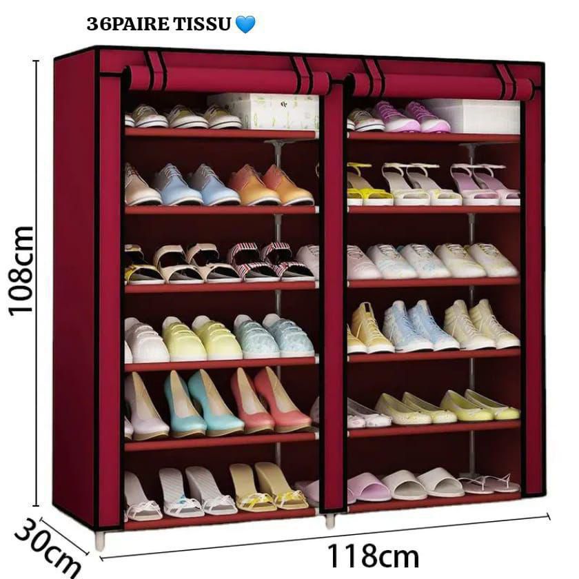 Organisez vos chaussures facilement avec ce rangement pratique en tissu, conçu pour accueillir jusqu’à 36 paires. Solide et respirant, il protège vos chaussures de la poussière tout en économisant de l’espace. Sa structure modulable et légère permet un montage simple et rapide, idéal pour les chambres, couloirs ou dressings.