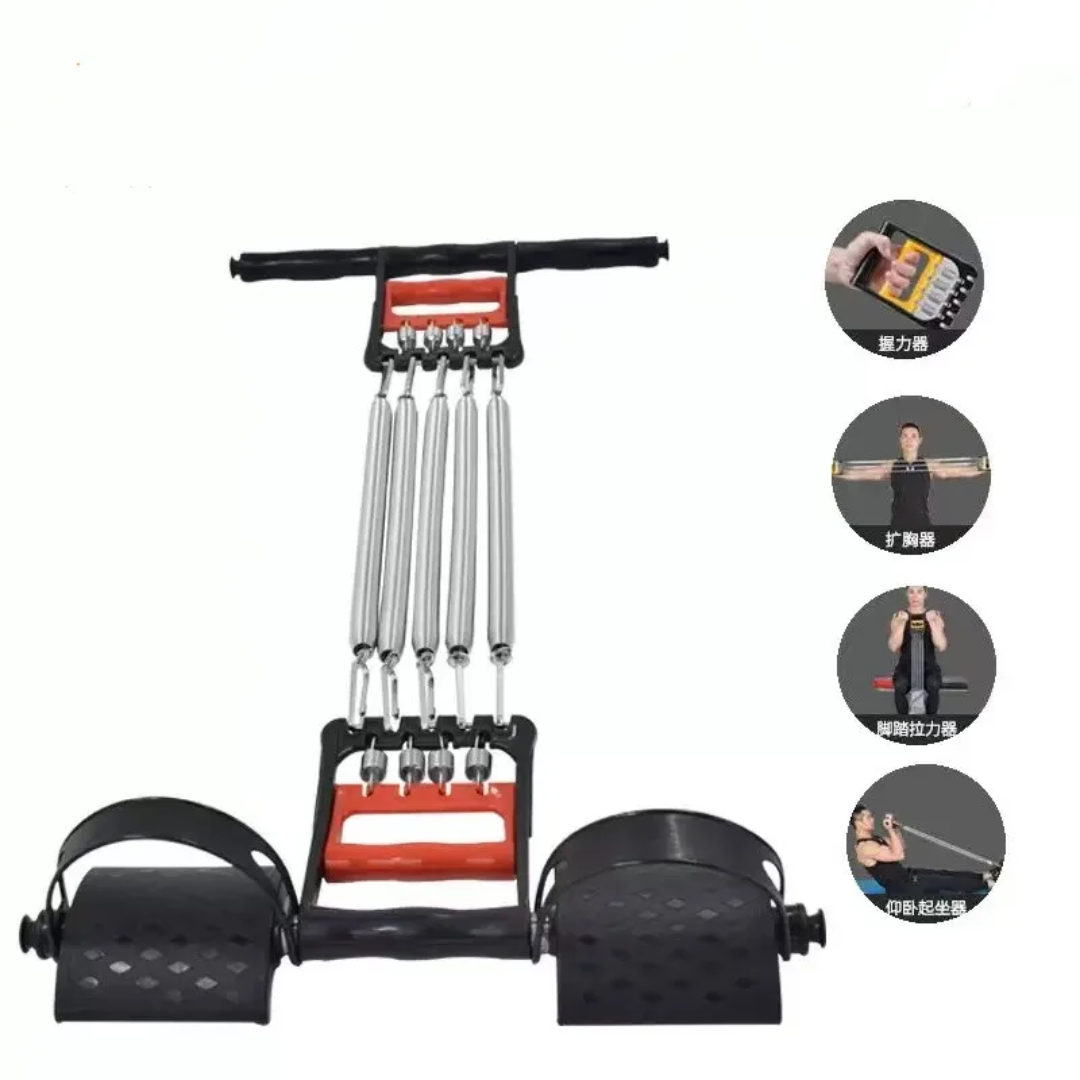 Renforcez vos muscles à la maison avec cet appareil d’exercice multifonction à ressorts. Conçu pour travailler le haut et le bas du corps, il permet d’effectuer différents exercices de traction et de résistance. Son système de 5 ressorts métalliques solides offre une intensité ajustable selon votre niveau, idéal pour développer les bras, la poitrine, le dos et les jambes.